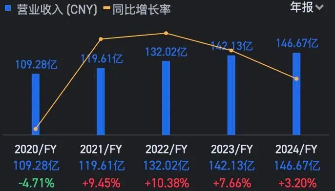 近年来,燕京啤酒的营收增速明显放缓。2022-2024年,其分别实现营业收入132.02亿元、142.13亿元、146.67亿元,对应增速分别为10.38%、7.66%、3.2%,呈逐年下滑态势。而作为燕京啤酒的核心主业啤酒板块,表现也并不如意,2022-2024年,其啤酒销量增速分别为4.12%、4.57%和1.57%,逐年下探。业内人士分析认为,随着行业存量竞争的加剧,燕京啤酒增速放缓问题或将进一步加剧。