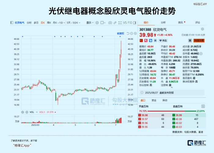 就在昨日,光伏继电器概念股欣灵电气从早盘微跌状态到午后迅速拉向20CM涨停,近5交易日就有3日斩获20CM。到今天该股继续强势上涨盘中一度超过15%,最终收涨5%。成为本月来涨幅最 大的光伏股,累计涨幅达到了62.45%。