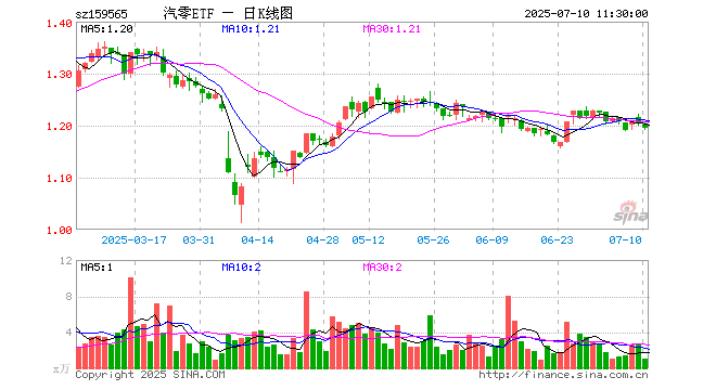 汽车零部件ETF(159565)跌0.75%,半日成交额118.63万元