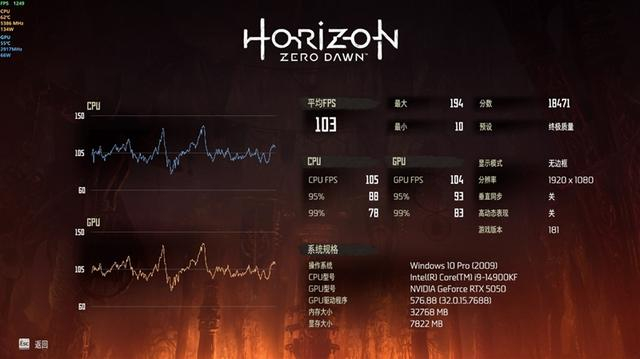 在《地平线:零之曙光》中,使用终极质量画质进行测试,1080P分辨率下平均帧率为103。