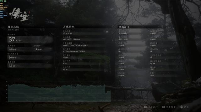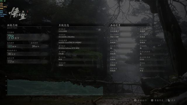 在《黑神话·悟空》中,使用影视级画质预设,DLSS采样精度设置为50,记录游戏测试帧数。