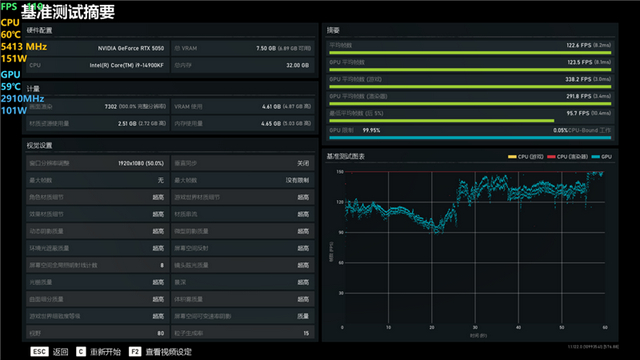 在《战争机器5》中,使用超高画质进行测试,1080P分辨率下平均帧率为122.6。