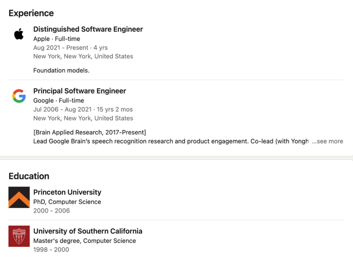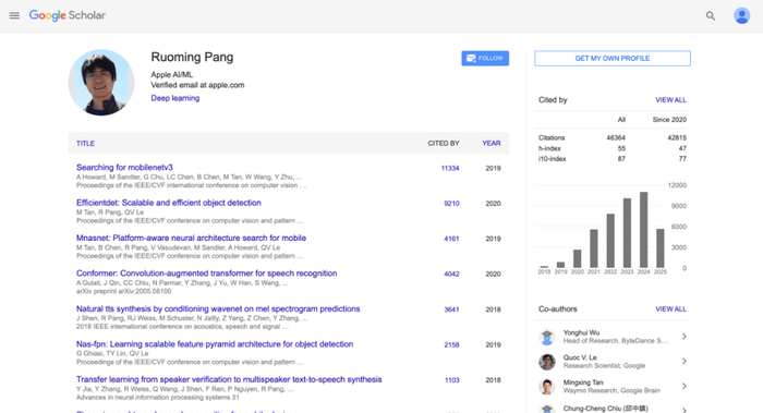 庞若鸣本科毕业于上海交通大学,硕士毕业于南加州大学,同时也是普林斯顿大学计算机博士,在苹果负责基础模型(AFM)团队,带领百人团队研发苹果自研大语言模型。