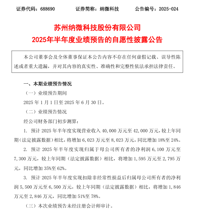 纳微科技2025年半年度净利预增超50%