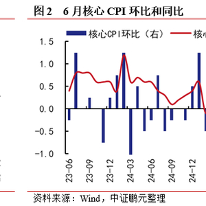 CPI同比增速回升,由负转正,食品项和非食品项均形成支撑,核心通胀同比再次小幅上升,为年内最高值,环比持平。6月CPI同比增速转正,较上月上升0.2pct,略高于wind市场预期(-0.03%);CPI环比-0.1%,较上月上升0.1pct,略强于季节性(-0.18%)。分项来看,6月CPI内部分化并未扩大,其中食品项、非食品项分别同比-0.3%和0.1%,均较上月上升0.1pct,共同推动CPI回升。剔除食品和能源后,6月核心CPI同比上涨0.7%,较上月上升0.1pct,连续四个月增速为正,而且为年内最高值;环比0.0%,近似持平于季节性(-0.06%),持平于前一月环比(0.0%)。