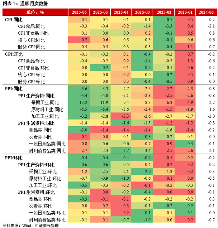 6月CPI同比增长0.1%,略高于wind市场预期(-0.03%),高于前值(-0.1%);