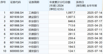 【四家银行股今日齐分红,2024年度分红总额超6200亿元】