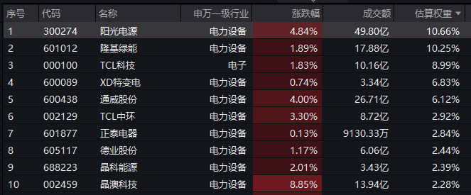 【光伏龙头ETF(516290)标的指数前十大成分股】