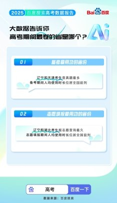 百度搜索联合中国教育在线发布《2025高考数据报告》,结合百亿搜索大数据,传递高考分数之外的数据洞察。