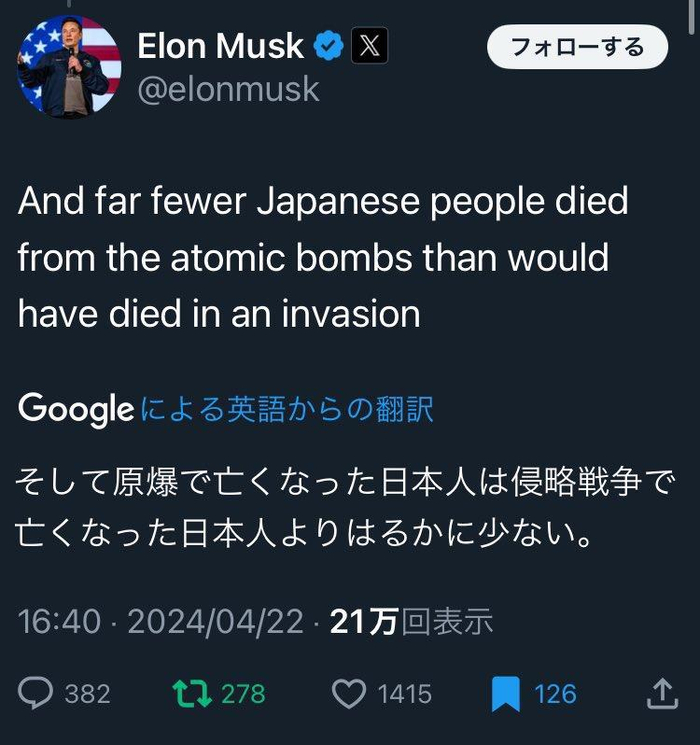 有网民查到马斯克于2024年4月发布的一则网帖,当时马斯克称“死于原子弹轰炸的人,远比(因日本不投降导致的)入侵造成的要更少”。有网民分析,Grok对相关问题的看法可能是因为其语料库包含了马斯克本人的过往发言。