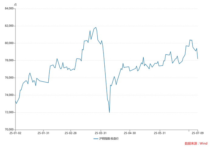财联社7月10日讯(编辑 李响)昨日,美国总统特朗普宣布50%进口铜关税将于8月1日生效,纽约铜应声直线拉升,日内涨幅一度扩大至17%创历史新高.沪铜夜盘冲高至80300元后回落,日间持续走低至78750元,最终收报78940元/吨,隔月价差扩大至360元。铜价的短期瞬间下跌引发市场广泛关注。
