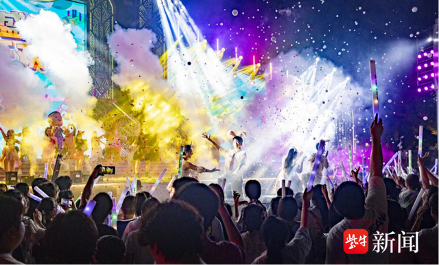 此外,日夜不歇的主题演出也吸引不少游客前来。“今天特别来体验下‘嗨潮电音派对’,节奏感超强,很适合夏天!”年轻游客纷纷点赞夜场演出,一同享受视听狂欢盛宴。整个暑期活动期间,徐州方特梦幻焰火秀会连续绽放65夜,漫天烟花将和澎湃旋律共谱夏日狂欢乐章。