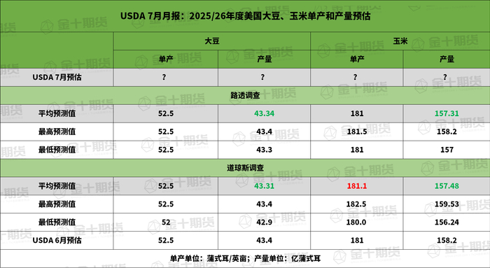 路透和道琼斯均预计USDA将上调美国大豆期末库存预估,分别为3.02亿蒲和3.04亿蒲,USDA 6月月报预估为2.95亿蒲。