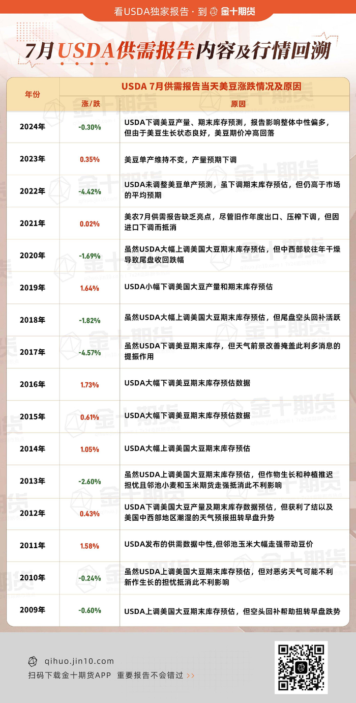 USDA将于北京时间7月12日(周六)凌晨0点公布7月供需报告。一般而言,7月供需报告基本不会调整单产数据,但6月底更新的种植报告将会在此份报告中体现,关注大豆、玉米的产量和库存变化情况;此外,美豆油需求也需额外关注。