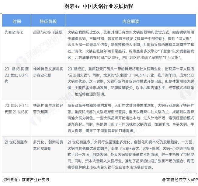 火锅在我国历史悠久,从先秦时期的原始形态,到三国时期魏文帝曹丕颁发的《赐皇子中部督诏》中最早记载 “温火锅”,再到明清时期随着辣椒传入和地域特色凸显,火锅逐渐丰富多样。20世纪初,重庆、北京等地的火锅开始商业化,出现如“云龙园火锅”“东来顺”等品牌,开启了初步商业化之路,但发展较缓慢。20世纪80年代后,随着经济改革与开放,火锅行业迎来快速扩张,川渝火锅走向全国,各地火锅流派百花齐放,连锁经营模式崭露头角。进入21世纪,火锅行业步入多元化、创新与资本化发展新阶段,不仅有火锅与其他餐饮形式的融合创新,还有自热火锅、外卖火锅等新业态涌现,同时资本大量涌入,推动品牌扩张与市场整合。
