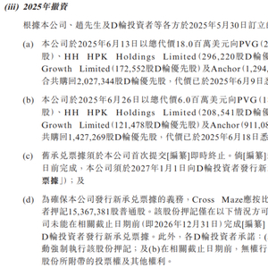 其中,2025年的撤资中,公司不仅进行了D轮优先股回购,为确保公司发行新承兑票据的义务,Cross Maze还按比例向D轮投资者抵押了约1536.74万股普通股。