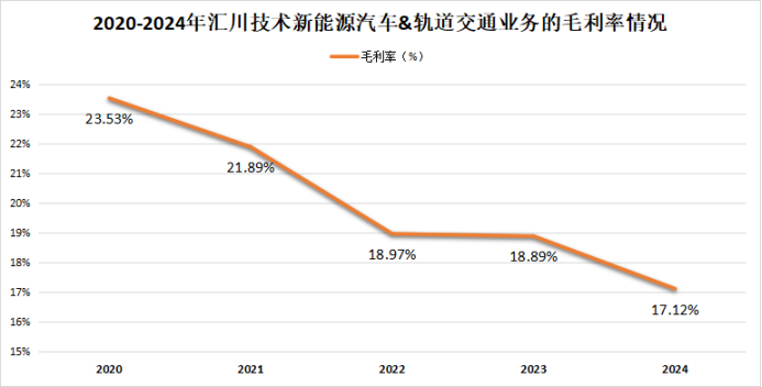 数据显示,汇川技术这块业务的毛利率逐年下滑,2024年已经降至17.12%,盈利空间遭受挤压。