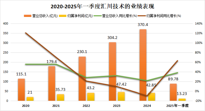 2020-2024年,汇川技术的业绩增速经历了明显的放缓,营收同比增速从57.76%逐步回落至21.77%。