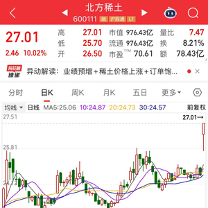 稀土指数今日上涨5.16%,领涨两市。北方稀土涨停,中国稀土、盛和资源等跟涨。消息面上,北方稀土昨日盘后公告,预计2025年半年度实现归母净利润9亿元到9.6亿元,同比增长1882.54%到2014.71%。
