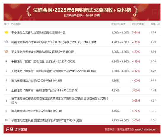 财联社7月10日讯 本期聚焦于2025年6月到期公募封闭式理财兑付收益率榜单数据梳理和评价,主要按照纯固收类、固收+、混合类、QDII等4大类来进行。