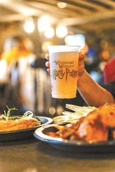 在北京环球影城,黄油啤酒一直是园区里的热门商品,普通版售价50元一杯。虽不含酒精但独具特色,上层奶油香甜,下层苏打水清爽,味道像酥饼和黄油糖果,大人小孩都可以品尝。它不仅是饮品,更成为园区的打卡标志,常有消费者购买后拍照分享,使其在社交平台广泛传播。