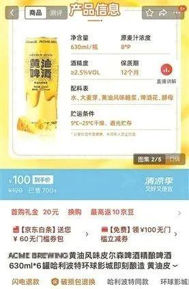 “2号链接是我们的爆款产品‘黄油啤酒’,它酒精含量是0%……”在某平台的直播间里,销售员正在卖力地推荐刘先生购买过的这个所谓爆款“黄油啤酒”。