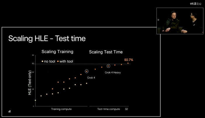 马斯克表示,Grok 4 每次都能在 SAT 考试(美国高考)中获得满分,无需事先查看题目,它也可以做到 GRE 任何学科接近满分,超过了全世界所有研究生的水平。Grok 4 最强大的地方是其推理能力,它已经实现了超越人类的推理水平。