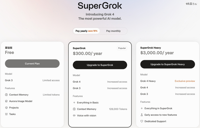 原标题:马斯克发布Grok 4,年费飚到2万+ 来源:机器之心