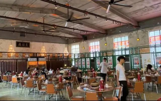 如今,友谊商店将后院9处功能各异的旧空间转化为特色商业场所,每一处都保留着历史痕迹:本土咖啡品牌Berry Beans进驻原传达室,延续了其“选址非寻常地”的特色;北平机器将原来的公务车库打造成半开放空间,卷闸门变身升降玻璃门,墙壁绘有象征“友谊”的迎客松壁画;素食餐厅度粒Duli在原来的冷冻机房上演素食与美味的颠覆之旅,甚至保留了玻璃窗上的油漆字;铁手咖啡制造局把维修间改造成“蒸汽朋克花园”;原本的职工食堂,内外都几乎保留了原样,成为阿招鸡煲。