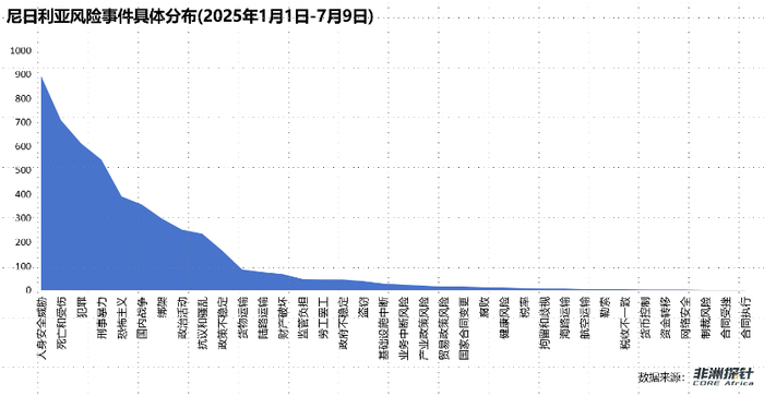 长期以来,尼日利亚社会治安事件呈现高发多发态势,社会安全形势复杂严峻。“非洲探针”显示,2025年上半年,与人身安全威胁、死亡和受伤、犯罪、刑事暴力、盗窃、财产破坏、绑架、拘留和歧视、勒索相关的九类社会治安事件在尼日利亚均有发生。