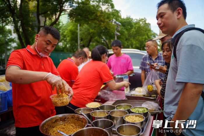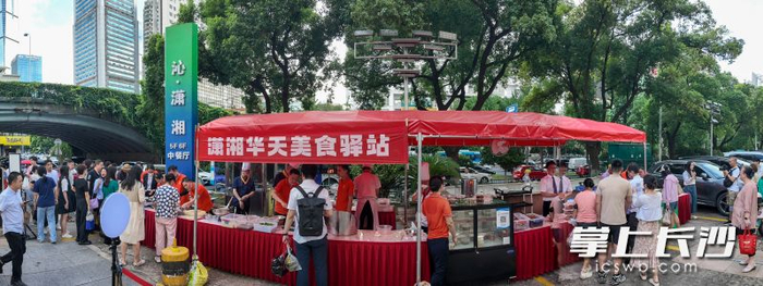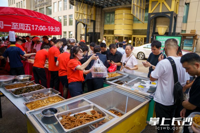 长沙晚报掌上长沙7月10日讯(全媒体记者 范宏欢)7月9日下午4时50分,还未到正式营业的时间,长沙潇湘华天大酒店南侧通道已人头攒动,酱香浓郁的鸭掌、猪脚,爽滑地道的安乡凉面,刚一出摊便被闻讯而来的市民团团围住。