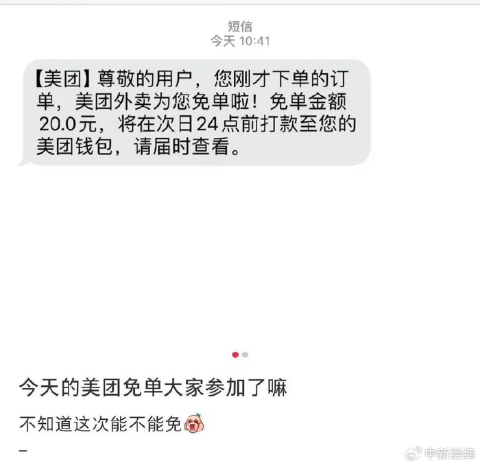 10日午间,社交平台上不少用户称收到了美团外卖免单的消息,随后“美团免单”登上了微博热搜榜一。