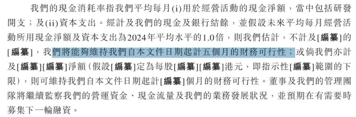 公司表示,若未来平均每月经营活动所动用现金净额及资本支出为2024年平均水平的1倍,仅能够维持未来五个月的财务支出。