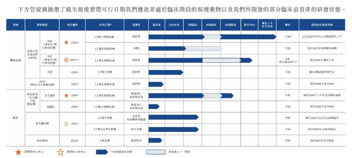 公司的八大在研管线中,三款核心产品已进入后期开发:辅助生殖领域的JZB30(重组人促卵泡激素冻干粉针剂)刚获批上市,重组人促卵泡激素注射液JZB33已提交NDA(新药生产上市注册申请);眼科领域的JZB05(抗VEGF 注射液)在40余家中心开展III期临床。