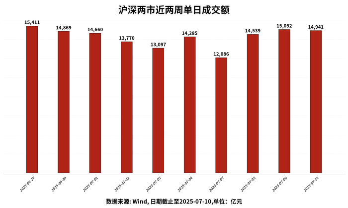 沪深两市成交额为14941亿元人民币,相较上个交易日小幅缩量。