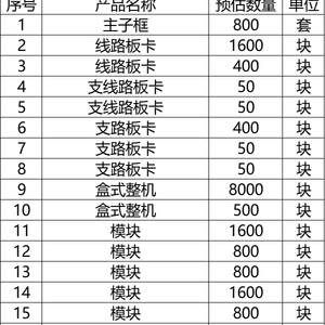 预估规模、产品名称、数量具体如下:
