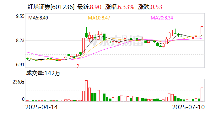 此外,7月9日红塔证券也发布公告,预计公司2025年半年度实现归母净利润为6.51亿元到6.96亿元,同比增长45%到55%。