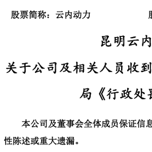 我局在现场检查中发现昆明云内动力股份有限公司(以下简称云内动力、公司)涉嫌信息披露违法违规线索并立案调查,现已调查完毕,我局依法拟对你们作出行政处罚。现将我局拟对你们作出行政处罚所根据的违法事实、理由、依据及你们享有的相关权利予以告知。