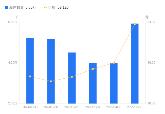 近一年(2024年6月30日至2025年6月30日),广晟有色A股股东户数从5.12万户,增加至5.55万户,增幅8.33%,区间股价上涨94.29%。