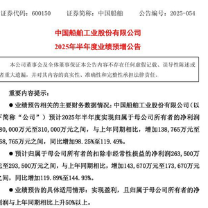 7月10日晚间,中国船舶(SH600150)、中国重工(SH601989)发布2025年上半年业绩预告,两公司预计归母净利润均实现同比大幅增长。中国船舶的预计净利润规模高于中国重工,中国重工的预计净利润同比增速则快于中国船舶。