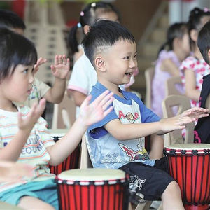 暑假期间,孩子们参加丰富多彩的活动,充实假期生活。图为小朋友在湖南省永州市道县爱心暑托班学习非洲鼓。 新华社发(何红福 摄)