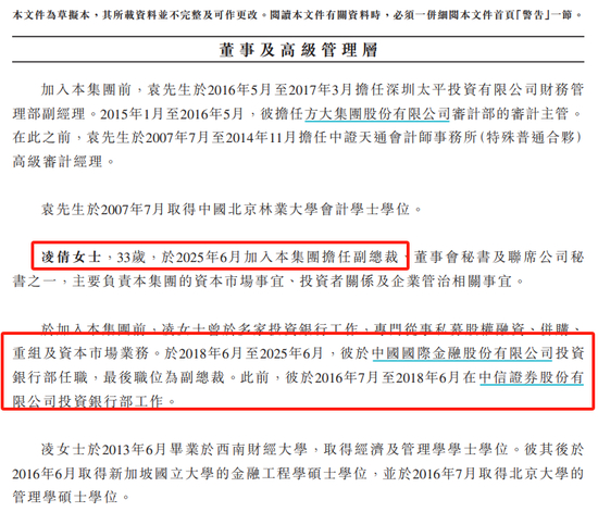 此外,力场君还关注到斯坦德机器人的董秘凌倩女士,她是2025年6月才入职到公司担任副总裁、董事会秘书及联席公司秘书职务的,在此之前的职业履历堪称亮眼。1992年生人的凌倩,在2013年从西南财经大学本科毕业,然后只用了3年时间,就获得了新加坡国立大学金融工程学硕士学位,和北京大学管理学硕士学位。