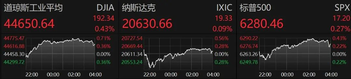 周四美股盘中反弹,至收盘纳指涨0.09%,标普500指数涨0.27%,两大指数均创下收盘新高,道指涨0.43%。