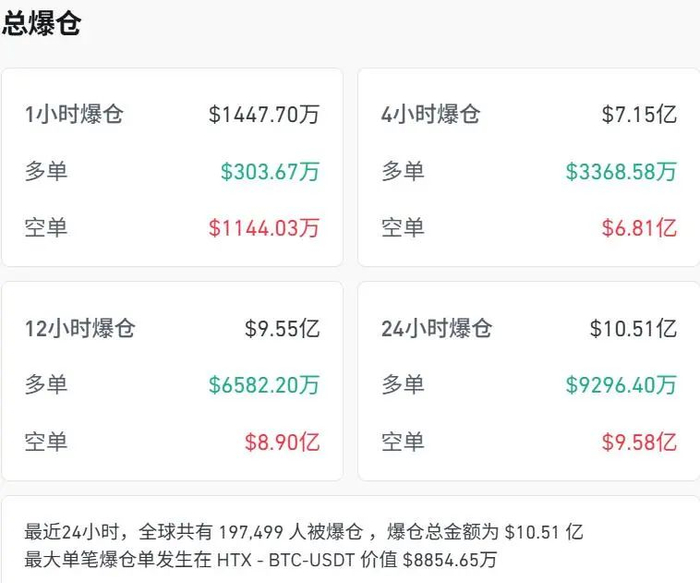过去的24小时,全球共有超19万人爆仓。