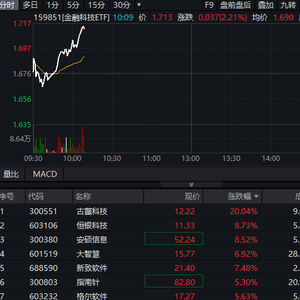 投资机会上,招商证券表示,展望7月,科技创新仍然是成长主线,重点看好金融科技等方向。金融科技板块题材与大盘共振,配置价值凸显。