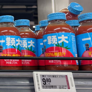 目前一颗大的主要产品,包括串樱桃番茄、NFC番茄汁(包括黄番茄汁)、番茄乌梅气泡水、番茄养生水以及番茄火锅底料等。在价格带上处于中高端,界面新闻注意到,在天猫旗舰店,一颗大品牌的198g规格红串番茄每盒单价在19.7元,照此计算每500g的价格约49.8元。270g规格的NFC番茄汁每瓶单价在9-10元左右。