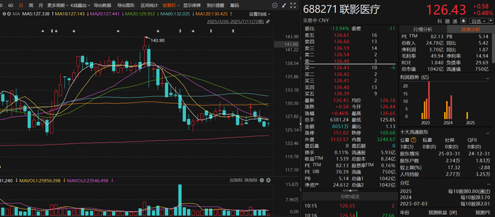 截至7月10日收盘,联影医疗股价报125.85元/股,总市值1037亿元,相比2022年10月高点下跌42%。