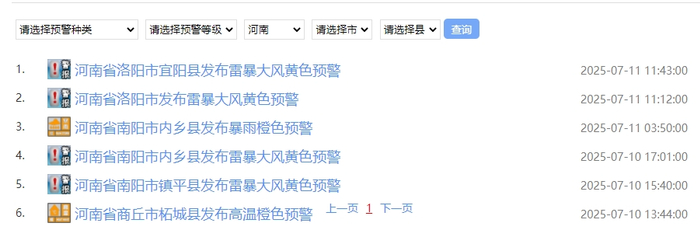 据河南气象,截至7月11日12:04分,生效中的预警共有6个↑