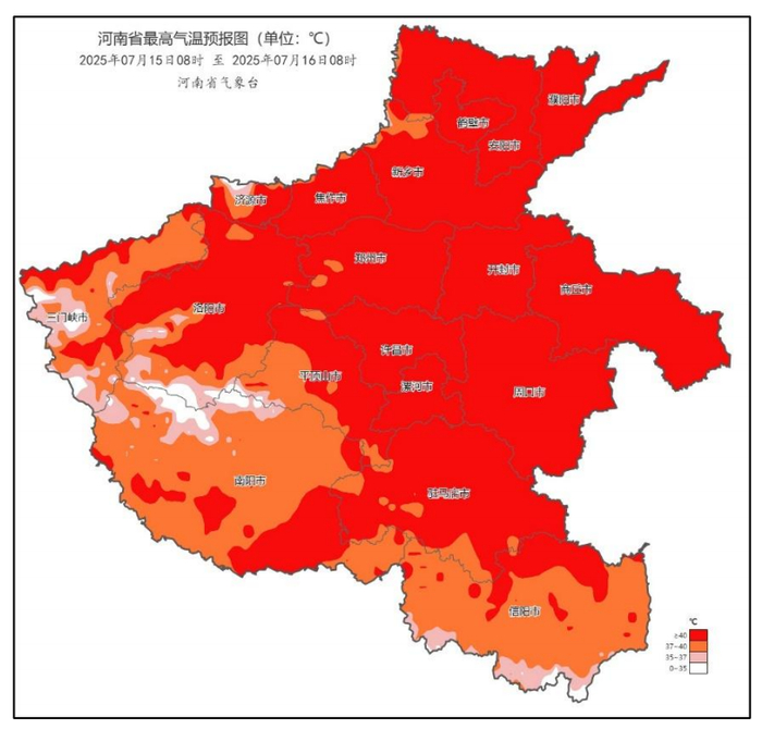 7月11日,记者从河南省气象台获悉,7月12日起,西太平洋副热带高压将再次控制河南省,受其影响,13日至20日河南省大部将持续37℃以上高温闷热天气,14日至16日将是此轮高温天气最强时段,北中部、东部、南部部分县(市、区)最高气温40℃以上,局部超过42℃,中南部局部可能达到或突破历史同期极值。此外,15日夜里至16日,河南省有一次对流性降水过程。