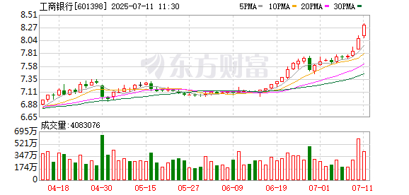 大金融板块走强 A股“一哥”工商银行逼近3万亿